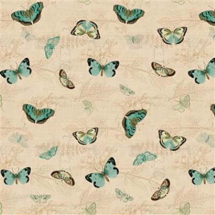 Clothworks - En Bleu - Tossed Butterflies, Light Khaki