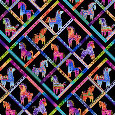 Clothworks - Fiesta Horses - Diamond Horses, Black/Metallic