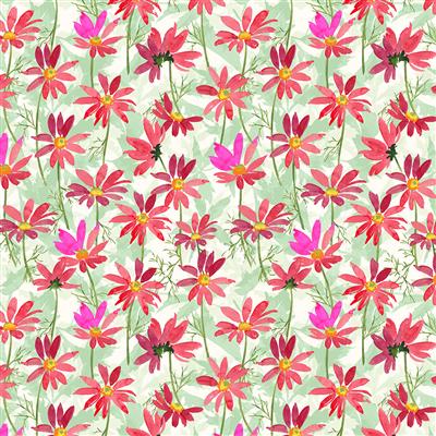 Brightly colored watercolor florals, vines and stripes make this collection a stunning one. Use in home décor or quilting projects.