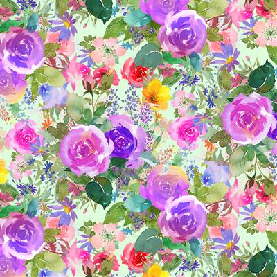 Brightly colored watercolor florals, vines and stripes make this collection a stunning one. Use in home décor or quilting projects.