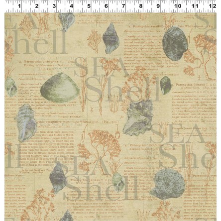 Clothworks - Sea Cottage - Sea Shell Collage, Khaki