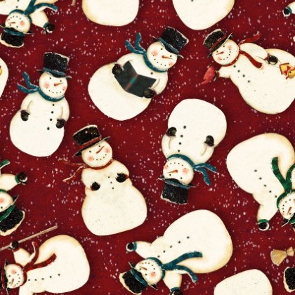 Clothworks - Snovalley - Tossed Snowmen, Dark Red