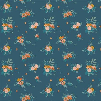 Clothworks - Stephanie - Bouquets, Dark Teal