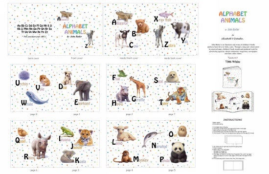 Elizabeth Studio - 36" Cloth Book Panel - Animal Friends ABCS Panel, White