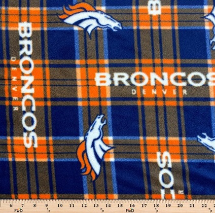 Fabric Traditions - NFL Fleece - Denver Broncos - Plaid, Navy/Orange