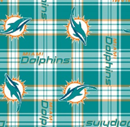 Fabric Traditions - NFL Fleece - Miami Dolphins - Plaid, Teal