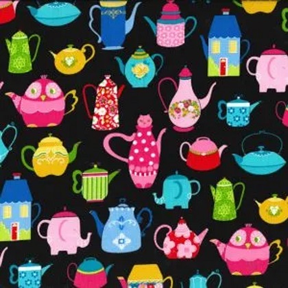 Fabric Traditions - Novelty Prints - Tea Cups, Black
