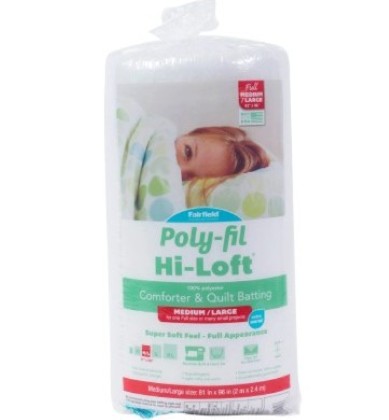 Poly-Fil Hi-Loft 100% bonded polyester quilt batting is appropriate for machine quilting, whole cloth, Hawaiian, duvets, and comforters or making tied quilts. The higher loft creates a fluffy plush look and feel while providing warmth without the weight. It is perfect for projects where you want a lot of definition and texture. It also works great for upholstery, home décor, school projects and holiday decorations. It will not beard, is easy to needle, hypo-allergenic and washable after quilting. The 81in x 96in Full Size is perfect for full and double bed quilts, duvets and comforters. You can create a quick and easy whole cloth quilt by choosing fabric with a larger print and quilt along the edges of the pattern in the fabric for a deep dimensional plush look in no time.