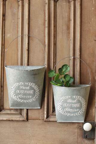 A charming wall pocket that reads, "Fresh Farmhouse Flowers." This would look adorable next to the garden area.