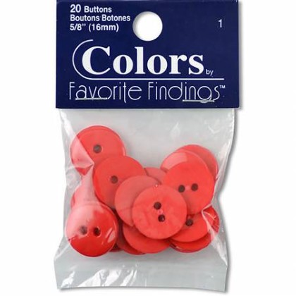Favorite Findings Buttons - Colors 5/8" (16mm) - 2 Hole Buttons - 20 ct, Red
