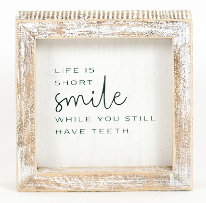 Framed Wooden Sign - Smile While You Still Have Teeth