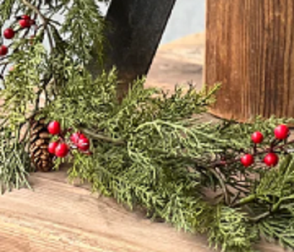 This collection is a classic pairing of cedar, red berries, and pine cones.