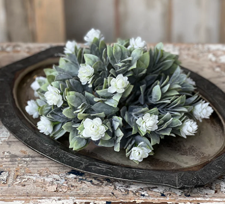 Stems of spear-shaped flocked leaves create a gorgeous background for multitudes of hop-like blooms.