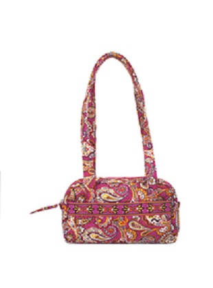 This handbag features a unique multicolored design and is thickly quilted from the inside out. Includes six pockets on the inside, one pocket on the outside, two expansion ties, and a zipper closure. Spacious interior and looks great with the convertible wallet.(Sold separately)