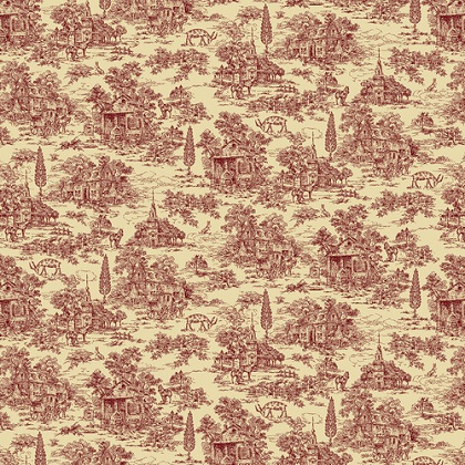 This classic toile print, designed by Kim Diehl, features vintage scenes of homes and buildings with trees and small animals. This will work on classic quilts as well as contemporary quilts for backings.