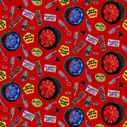 /Shopping/Fabric/Fabric (Shop By Manufacturer)/Henry Glass/American Truckers/Henry Glass - American Truckers - Truck Parts, Red