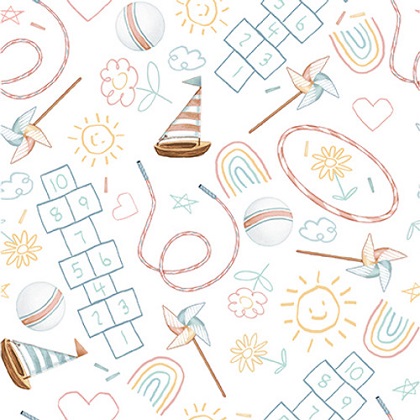 Charming lions, bears, donkeys, sheep and cows are all dressed up in overalls and ready to play. These Boho Buddies like to jump rope, play hopscotch and hula hoop. Will you join them as they have some fun? Polka dots, rainbows, stars and suns all complement the fun animal prints. The soothing colors are perfect for a child’s room. Create a cute and cuddly quilt for the little ones in your life using Boho Buddies.