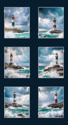 Henry Glass - Coastal Guardians - 24" Light House Blocks. Blue/Multi