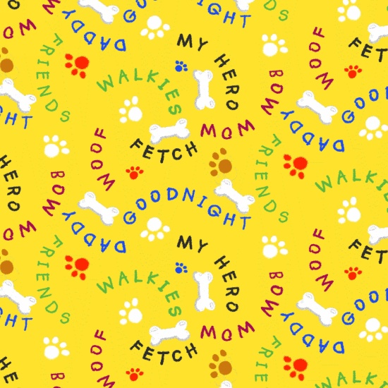 Daddy and Me is a cute doggy fabric line. Done in bright primary colors, it features a Daddy dog and his puppy having a fun day together. Main focus of this collection is a soft book about Daddy dog and his puppy enjoying their day! Coordinating fabric include dogs, dog treats, and paw prints. Create a cute throw blanket or quilt for your favorite little guy!