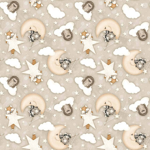 Dream Big Little One by Shelly Comiskey is a beautiful depiction of the story of Noah’s Ark. This 11-piece collection features a panel with the animal-filled ark. Bears, racoons, foxes, moose, deer, owls and hedgehogs are all invited to ride along. This collection is brought together with a color palette of blue, beige and light yellow. The moon and stars light up the night sky for these travelers! Rainbows spread across clouds above the forest. Patterns include tossed arks, racoons, and animals on top of the moon and stars. There is also a 24" continuous block pattern and a stripe. These soft patterns are perfect for any quilting project for the young as well as for nursery décor.