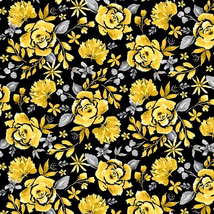 /Shopping/Fabric/Fabric (Shop By Manufacturer)/Henry Glass/Misty Morning/Henry Glass - Misty Morning - Yellow Cabbage Roses, Black