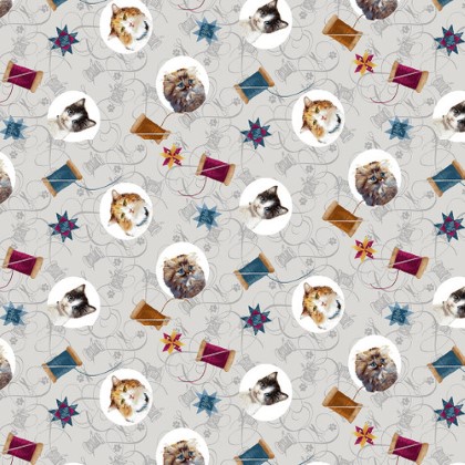 Henry Glass - Quilted Kitties - Cat Medallions, Gray