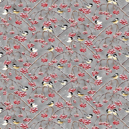 Henry Glass - Snow Crew - Chickadees & Berries, Gray