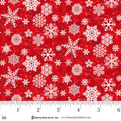 Henry Glass - Snow Crew Flannel - Snowflakes, Red