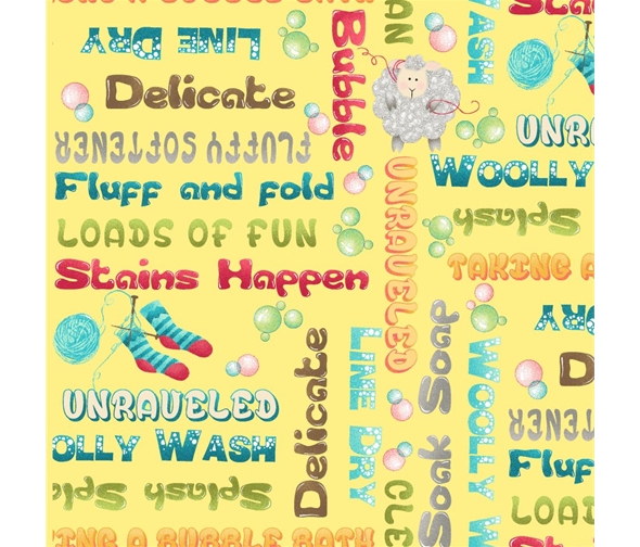 Make bath time look like fun for your little lamb! Splish Splash is a sweet fabric designed by Sandy Lee. Mama sheep gives her lambs a bath, and hangs them and their clothes out to dry! Done in pink, blue, and green with a splash of bright florals.Soap, shampoo, sponges and soapy bubbles float across this fabric. Make an adorable quilt for your little lamb to snuggle under! A soft book panel is included in this collection.