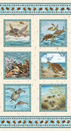 Henry Glass - Turtle March - 24" Block Panel, Cream