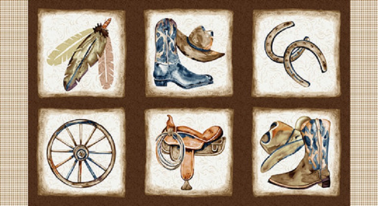 Henry Glass - Western View - 24" Blocks Panel, Brown