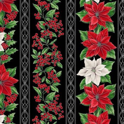 Hoffman California - Blooming Holidays - Border Stripe, Onyx/Silver