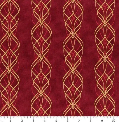 Hoffman California - Blooming Holidays - Ornate Wavy Stripes, Scarlet/Gold