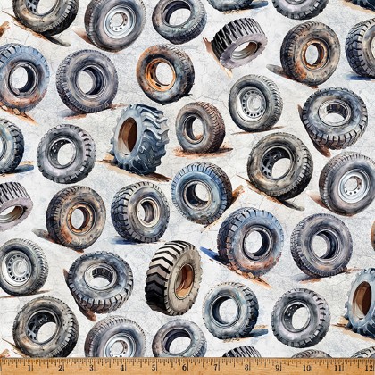 /Shopping/Fabric/Fabric (Shop By Manufacturer)/Hoffman California/Hammer Down/Hoffman California - Hammer Down - Tossed Tires, Light Gray