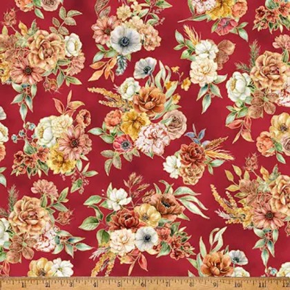 The Harvest Bouquet fabric collection from Hoffman Fabrics captures the bold and warm colors of the fall season in every design. Inspired by the beauty of nature during harvest time, this collection features rich tones of autumnal orange, bold ecru, rich red, and mild spruce and eucalyptus green. The intricate floral patterns and foliage motifs evoke the abundance and charm of fall gardens, with elegant details that bring each fabric to life. Perfect for quilting, home décor projects, and seasonal apparel, this collection offers versatile designs that reflect the cozy, rustic essence of autumn.