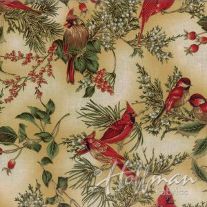 Hoffman California - Winter Magic - Birds & Berries, Gold/Cream