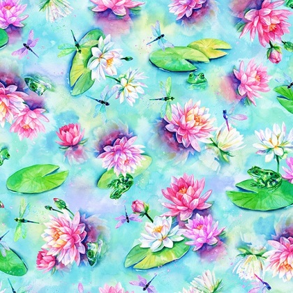 Wade into this collection and become fully immersed in Wading with Water Lilies. This collection has dragonflies, lilies, frogs and lily pads in rich shades of blue, green, pink and purple. The coordinating prints of watercolor stripes, splatter dots and florals make this a great collection for your next project!