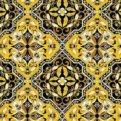 Our new Buzzworthy collection is enhanced with Metallic gold and buzzing with splendor. The star of the collection is the regal panel - a beautiful bee house swarming with velvety bees and dazzling daisies. The coordinates feature a unique zig zag stripe border print, lovely florals, stylized bees and classic honeycomb geometrics. Use this collection for your next quilt project, pillows, aprons and gifts for the bee lover in your life!