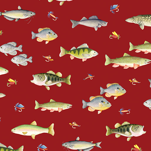 Let's go fish'n. Spend a relaxing day on the lake! Great print for fishing cabins or just to bring the fishing indoors! Use for curtains, pillows and other home décor. Design a quilt for your favorite fisherman! Designed by Andi Metz