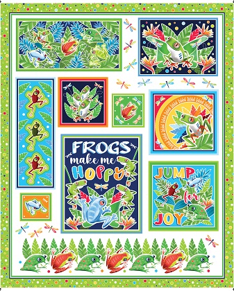 These rainforest frogs are so happy and colorful, they seem to just jump off the fabric! The two panels both feature adorable froggy sayings, and we’ve added a great border stripe and tons of amphibian coordinates too. The colors are vibrant, all the hues of orange and blue and green just pop and hop. To make them even better, we’ve made the entire collection glow in the dark! It’s a fun and colorful group that the entire family can enjoy together.