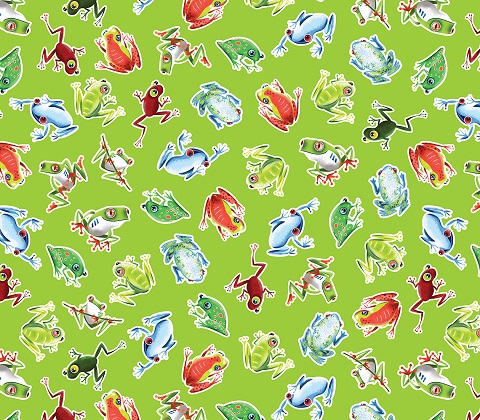 These rainforest frogs are so happy and colorful, they seem to just jump off the fabric! The two panels both feature adorable froggy sayings, and we’ve added a great border stripe and tons of amphibian coordinates too. The colors are vibrant, all the hues of orange and blue and green just pop and hop. To make them even better, we’ve made the entire collection glow in the dark! It’s a fun and colorful group that the entire family can enjoy together.