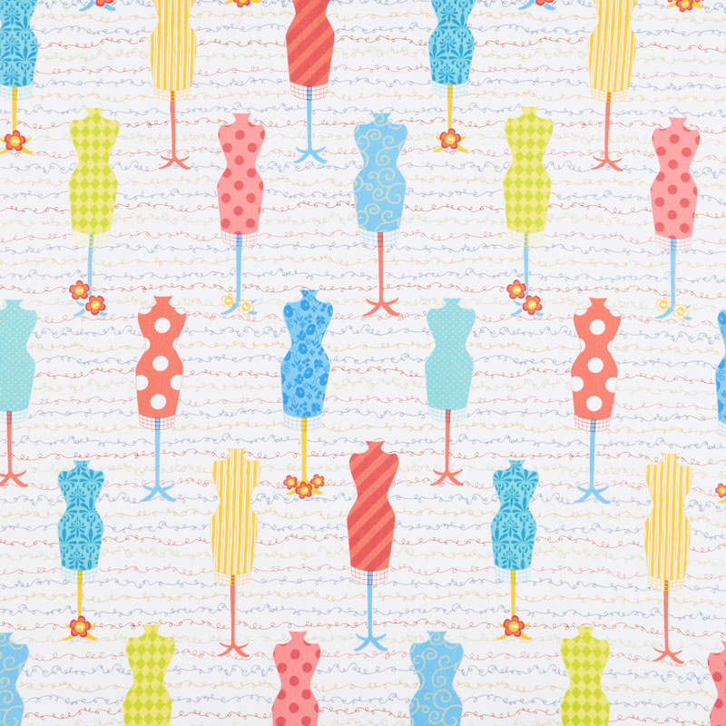 "Sew Excited" is a beautiful collection designed by Andi Metz. One look at this colorful sewing group, and you’ll agree... sewing IS exciting! Imagine how it will brighten up your sewing room with a new sewing machine cover, ironing board cover and much more! This collection could also make an adorable wall hanging, table runners, little dresses, placemats, etc.