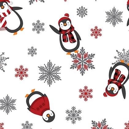 Kanvas Studio - Winter Comfort Flannel - Playful Penquins, White