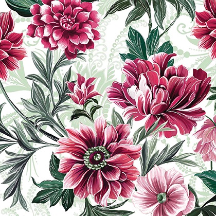 Large full flowers burst into bloom, stylized botanicals sway in the breeze, and an elegant stripe adds the perfect finishing touch to this sophisticated collection. The coordinates include delicate scrolls, graceful medallions and lovely leaves. In exquisite shades of berry, pink, sage and cream all highlighted with a hint of pearlescent, Winterberry Floral has everything you need to create chic quilts, throws and home décor projects.