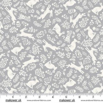 Makower - Foxwood - Bounding Bunnies, Silver Grey