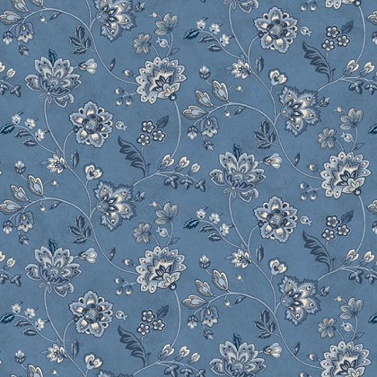 The pretty florals and coordinates in a sophisticated blue-and-cream palette make up the debut collection from Carrie Quinn, inspired by her grandmother. "My grandmother was an amazing woman and a beautiful quilter. Genevieve was her middle name."
