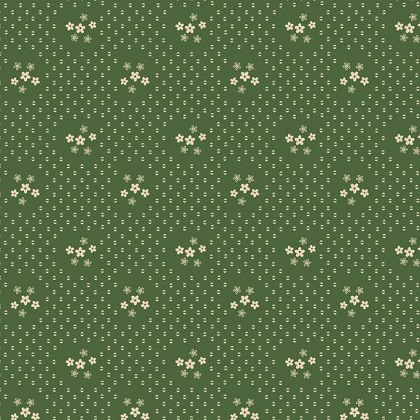 Large florals with coordinates are the look of the season, and in this collection Paula Barnes takes inspiration from two earlier collections, Tavern Blues and Tavern Greens. (These were combined to create Red Crinoline s Antique Stars quilt, the cover design on their Martingale book entitled Tributes and Treasures.) The new line echoes the color palettes, with the addition of an antique floral design for a more feminine feel. Paula Barnes suggests that this lead floral, in both light and dark grounds, and the coordinates look great with vintage linens and worn ticking bedding.