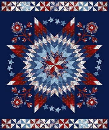 The classic Lone Star quilt is the striking result of careful cutting, pinning and piecing, not to mention several set-in seams. It's a look that intimidates many quilters, but Nancy Rink (Nancy Rink Designs) creates a pre-printed panel that makes the look easily achievable! In varying shades of red, white and blue, she adds florals, paisleys and geometric coordinates, including super-versatile Pinwheel cheater yardage, to complete the look. Nancy then designed TWO quilt patterns that meet the guidelines for Quilts of Valor -- one features the panel and one features the pinwheel cheater fabric.