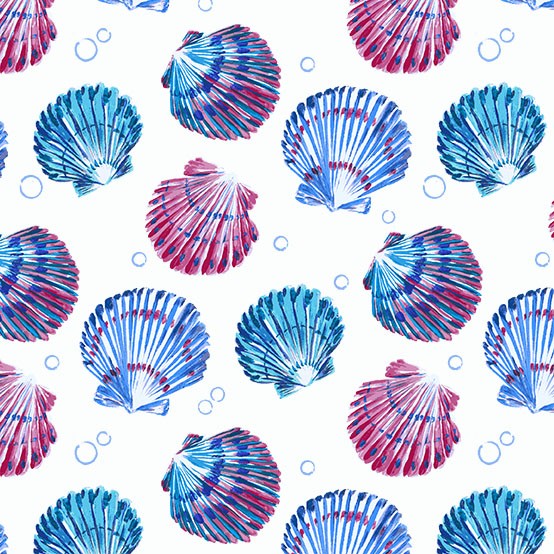 Fanciful Sea Life is a modern, watercolor style collection with 19 prints. Dancing jellyfish, tossed seashells and twirling seaweed will bring the motion of the ocean to your next quilting project. Starfish, seahorses and dots in stunning blues, turquoise and magenta add to the playful nature of this group.