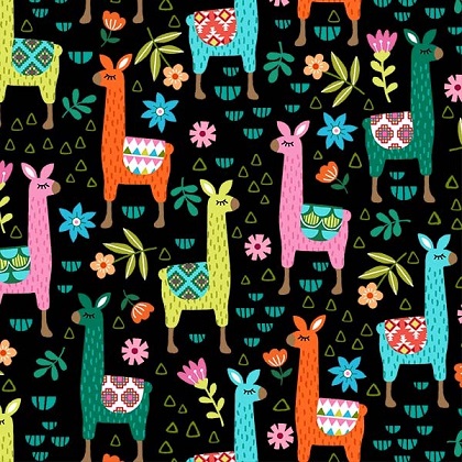 Michael Miller - Minky Prints - Painted Llamas, Black